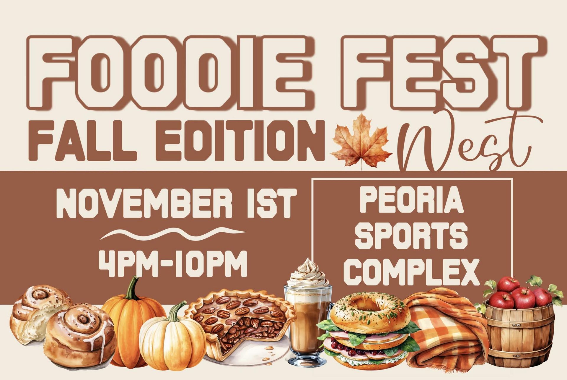 [Peoria] Foodie Fest West is heading to the Peoria Sports Complex with a Fall twist! 🚚 Food Trucks & Vendors 🥧 Pie Eating Contest 🛍️ Shopping Vendors 🪓 Axe Throwing 🐴 Petting Zoo 👒 Hat Bar 🍷 Full Bar 💐 Flower Bar 🎡 Kids Zone ✍️ Caricature Artist & many more family fun activities!! 𝐖𝐡𝐞𝐧 - November 1st 𝐖𝐡𝐞𝐫𝐞 - Peoria Sports Complex 16101 N. 83rd Ave. Peoria 85382 𝐓𝐢𝐦𝐞 - 4pm-10pm 🎟️ $5 to enter (12 and under free) 🚘 Free Parking (link)