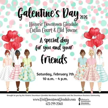 [Downtown Glendale] Historic Downtown Glendale presents Galentine’s Day on Saturday, February 7, 2026, from 10 a.m. to 4 p.m. with a fun day of activities to gather your best girlfriends together to honor the value of female friendships. (link)